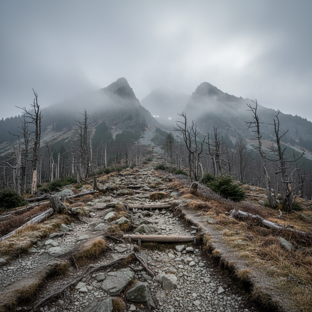 Zmiany klimatyczne nie omijają Tatr. Według raportu IMGW, 2024, sezon zimowy skrócił się o 15% w porównaniu do początku dekady, a liczba tzw. "czarnych dni" z powyżejprzeciętnym smogiem wzrosła dwukrotnie. Tłumy wydeptują szlaki, a niektóre gatunki roślin i zwierząt znikają z okolic popularnych tras.